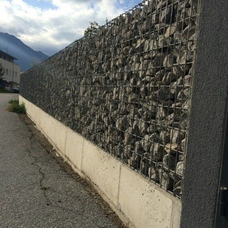Marco Brunner bietet den Bau von Gabionen an, also Drahtkörbe, die mit Steinen gefüllt werden. Gabionen sind ideal für Hangbefestigungen, dekorative Mauern oder Stützkonstruktionen und kombinieren Stabilität mit ansprechender Optik.